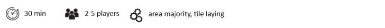 Each player represents a dynasty (a color, kept secret from other players) and try to get their color to have the best score. Scoring happens at the end of the game, both for rows and for columns, but each scores differently. In a row you get points for your highest tile (so the one in the highest position), for each tile of the same or lower value beneath it. The rows score for majority. Turns are simple: you place a tile (but you can’t add a tile to a column that’s complete – that has the number of tiles it needs to have according to the blueprint/the number tile at its bottom), choose to activate the tile’s effect or not, and take a new tile from the market. The fun resides of course in the abilities of the different tiles and how you can use those to manoeuver your tiles into the best position for scoring, or mess up your opponents’ plans. The artisan (tile with value 1) lets you play an additional tile that turn, the merchant (value 2) lets you take a tile from the market (in addition to the one you will get at the end of your turn), the monk (value 3) lets you swap the monk tile with another tile in the temple of its color, or with a tile of a different color of value 1, 2 or 3. The general (value 4) lets you remove an adjacent tile from the game, and finally the leader (value 5) lets you refresh the market of 6 six tiles or discard the tiles from your hand and draw a new hand of tiles.
