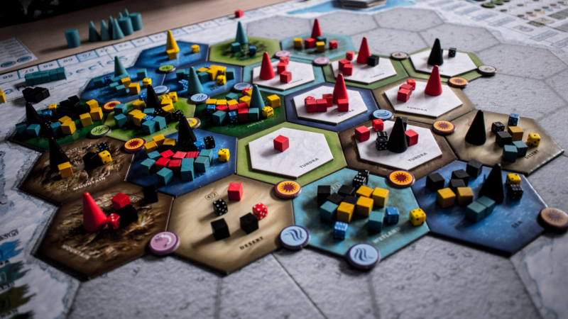 ... The latter is a bit disappointing ... because Dominant Species is an epic game. Even with players who know the game well and with the shortest variant, you'll still spend a few hours trying to settle this battle for dominance. Another stumbling block: this game can be mean.